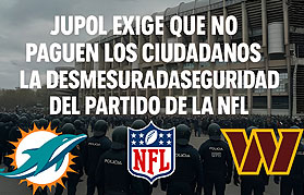 JUPOL denuncia el desmesurado despliegue policial para el partido de la NFL en el Bernabéu y exige que no sean los ciudadanos quienes paguen la seguridad de un evento privado y millonario. (Leer artículo) |