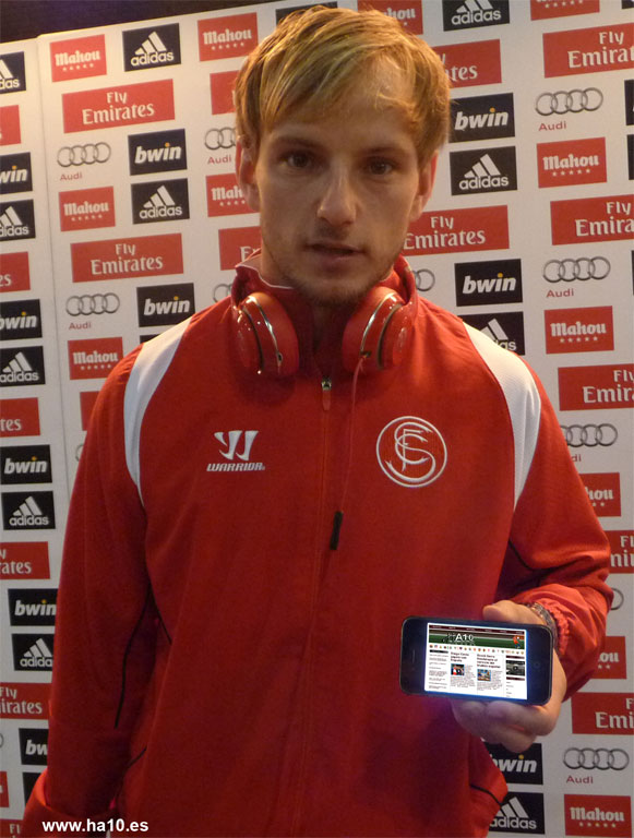 Iván Rakitić, nació en Suiza, pese a ser de origen croata. Inició su carrera en el Basilea, para fichar por al Schalke 04. Ese mismo año debutó con la Selección Croata. En enero de 2011 firmó con el Sevilla FC por cuatro años y medio. El 20 de febrero de 2011 se estrenaba como goleador sevillista en la victoria de su equipo (1-0) frente al Hércules. Rakitić, es un jugador que mueve mucho con la pelota, distribuye el juego y puede desenvolverse como mediocentro organizador con clase, pero su posición natural es mucho más arriba, jugando de enganche con la delantera, así ha jugado la temporada 2012-2013 en el Sevilla FC, incluso finalizando contragolpes él mismo, destacando goles de gran calidad como el gol que ha anotado en su último partido en el Bernabéu. Pese a caer por goleada y fallar un penalti, el jugador sevillista no lo vio todo tan negro y así nos lo comentó al hablar con HA10 al acabar el encuentro.