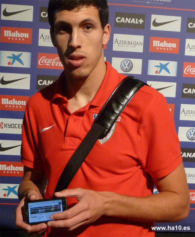 Adrián, delantero del Atlético de Madrid. Asturiano de nacimiento, comenzó su andadura futbolística en el R. Oviedo. Tras un año en Segunda B, dio el salto al Deportivo para jugar en Primera.. Tras dos cesiones al Alavés y al Málaga CF, en 2009 volvió a Riazor y tras el descenso del Deportivo en 2011, Adrián recaló en el Atlético de Madrid, club con el que ha conseguido la Europa League y Supercopa de Europa de 2012 y la Copa del Rey de 2013. El 2012 fue su gran año, mientras que en la pasada temporada y especialmente en esa se encuentra con mayores dificultades para entrar en el 'once' del Cholo. Tras la goleada al Getafe, se paró ante HA10 para mostrar su alegría por marcar su primer gol de la temporada.